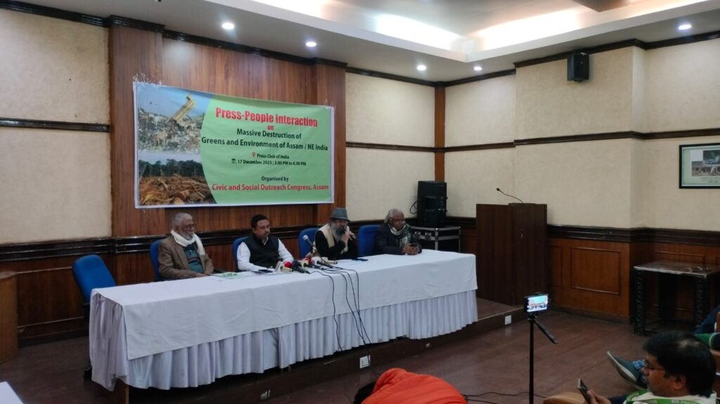 दिल्ली के प्रेस क्लब में असम सहित पूर्वोत्तर में पर्यावरण को सरकार द्वारा की जा रही तबाही के मुद्दे पर जन संवाद किया गया। सिविक एंड सोशल आउटरीच कांग्रेस, असम के अध्यक्ष बनदीप दत्ता ने विस्तार से इस मुद्दे पर बात रखी। उन्होंने कहा कि हम सभी इस बात से भली-भांति परिचित हैं कि पूरी दुनिया ग्लोबल वार्मिंग (ग्लोबल वार्मिंग) के गहरे संकट से गुजर रही है, जिसके परिणामस्वरूप जलवायु परिवर्तन के विभिन्न पहलू सामने आ रहे हैं। हम इस गंभीर समस्या का सामना पूंजीवादी और कॉर्पोरेट शक्तियों द्वारा किए गए पर्यावरणीय विनाश के परिणामस्वरूप कर रहे हैं। उदाहरण के लिए, दुनिया का सबसे बड़ा वर्षावन अमेज़न, जिसे हम ‘दुनिया के फेफड़े’ के रूप में जानते हैं और जो दुनिया की 20 प्रतिशत ऑक्सीजन प्रदान करता है, अब ग्लोबल वार्मिंग में एक महत्वपूर्ण कारक के रूप में पहचाना जा रहा है। इस संवाद कार्यक्रम में, हम देश के लोगों का ध्यान असम के लोगों द्वारा वर्तमान में झेली जा रही प्रमुख पर्यावरणीय समस्याओं की ओर आकर्षित करना चाहते हैं, जो उत्तर-पूर्वी क्षेत्र का मुख्य गलियारा है। असम की वर्तमान भाजपा नेतृत्व वाली सरकार ने अडानी-अंबानी जैसे बड़े व्यापारियों, मुख्यमंत्री और उनके साथी मंत्रियों के हित में राज्य के पर्यावरण पर हमला बोल दिया है। नदियों, पहाड़ों और जंगलों से ढके हरे-भरे असम के प्राकृतिक संसाधनों को एक तरफ लूटा गया है, तो दूसरी तरफ तथाकथित विकास के नाम पर किए गए विचारहीन निर्माणों ने असम को प्राकृतिक ऑक्सीजन संकट और ग्लोबल वार्मिंग से गहराई से प्रभावित राज्य बना दिया है। असम में विभिन्न निर्माण कार्यों, विशेष रूप से राष्ट्रीय राजमार्ग (NH) के विकास के लिए लाखों पेड़ काटे गए हैं। पिछले चार वर्षों (2020-2024) में, अकेले राष्ट्रीय राजमार्गों के लिए लगभग 94,000 पेड़ काटे गए हैं, जबकि गुवाहाटी में फ्लाईओवरों के लिए हजारों पेड़ काटे गए हैं। राज्य की प्राकृतिक हरियाली धीरे-धीरे नष्ट हो रही है। राजमार्ग विस्तार (NH37) और फ्लाईओवरों (जैसे श्रद्धांजलि, दिसपुर) के लिए तीन वर्षों में 3,000 से अधिक पेड़ काटे गए हैं। इसी तरह, NH-37 (वशिष्ठ से जलुकबारी तक) के विस्तार के लिए 2,500 से अधिक पेड़ काटे गए हैं। इसी अवधि के दौरान क्षेत्र में राष्ट्रीय राजमार्ग विकास के लिए 4.20 लाख से अधिक पेड़ काटे गए हैं। परिणामस्वरूप, राजधानी गुवाहाटी एक ‘हीट होल’ (गर्मी का केंद्र) बन गई है। भारी मात्रा में कार्बन उत्सर्जन हुआ है, जिससे शहर रहने लायक नहीं रहा और प्रदूषण गंभीर रूप से बढ़ गया है।