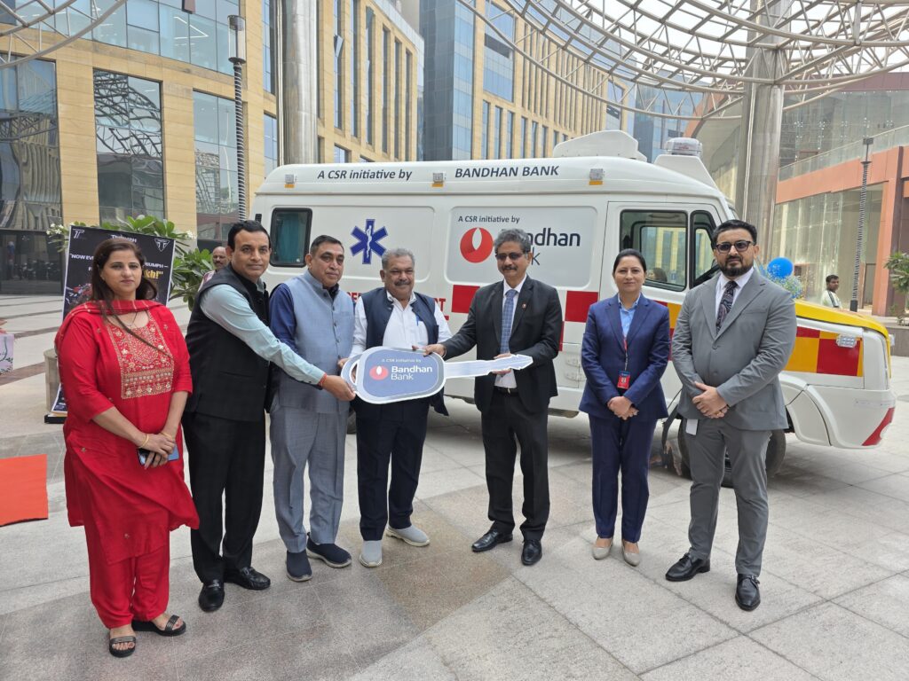बंधन बैंक ने अपनी सीएसआर पहल के तहत, आपातकालीन चिकित्सा पहुंच को मजबूत करने और विभिन्न समुदायों में स्वास्थ्य सेवा वितरण में सुधार करने के लिए दिल्ली में एक सहित पूरे भारत में 10 पूरी तरह से सुसज्जित एम्बुलेंस दान की हैं। बैंक के 10वें स्थापना दिवस समारोह के दौरान घोषित, इस पहल को अब एम्बुलेंस के दान के साथ लागू किया गया है। यह पहल स्वास्थ्य सेवाओं की पहुंच और जवाबदेही में सुधार करने के लिए बैंक की प्रतिबद्धता को दर्शाती है, यह सुनिश्चित करती है कि मरीजों को आपात स्थिति के दौरान समय पर चिकित्सा सुविधा मिले। इस अवसर पर बंधन बैंक के एमडी और सीईओ श्री पार्थ प्रतिम सेनगुप्ता और अन्य गणमान्य व्यक्तियों की उपस्थिति में एम्बुलेंस को औपचारिक रूप से श्री अग्रसेन इंटरनेशनल हॉस्पिटल के अध्यक्ष श्री लाजपत बंसल को सौंप दिया गया।