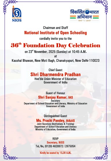 NIOS to Celebrate its 36th Foundation Day on 23rd November Union Education Minister Shri Dharmendra Pradhan to grace the occasion as Chief Guest Read More »