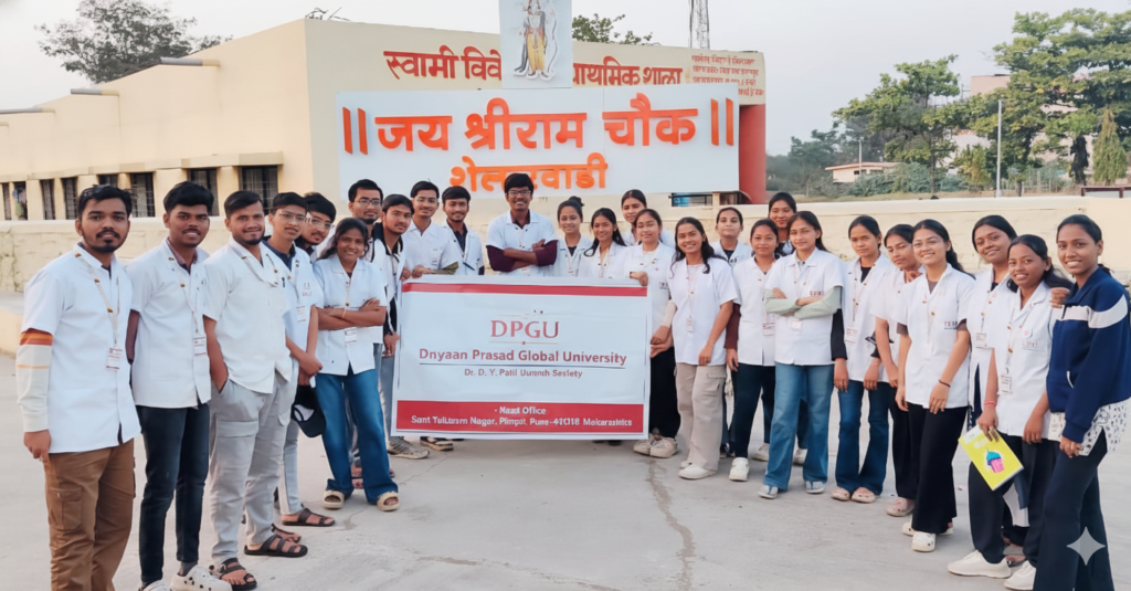 Dnyaan Prasad Global University by Dr. D. Y. Patil Unitech Society, initiated a series of impactful activities, including a 3-day NSS camp, a clean water and public health awareness programme, as well as healthcare and community engagement initiatives in Shelarwadi village to raise awareness of the environment and value-based education.
