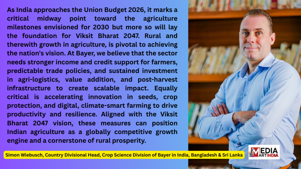 As India approaches the Union Budget 2026, it marks a critical midway point toward the agriculture milestones envisioned for 2030 but more so will lay the foundation for Viksit Bharat 2047. Rural and therewith growth in agriculture, is pivotal to achieving the nation’s vision. At Bayer, we believe that the sector needs stronger income and credit support for farmers, predictable trade policies, and sustained investment in agri-logistics, value addition, and post-harvest infrastructure to create scalable impact. Equally critical is accelerating innovation in seeds, crop protection, and digital, climate-smart farming to drive productivity and resilience. Aligned with the Viksit Bharat 2047 vision, these measures can position Indian agriculture as a globally competitive growth engine and a cornerstone of rural prosperity.