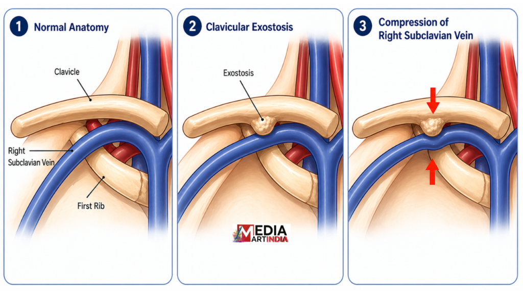 Orthopaedic surgeons at Manipal Hospitals, Baner, Pune, successfully treated a 45-year-old male. Patient was suffering from severe swelling and tightness in the right upper limb due to a rare compression of a major vein because of an abnormal bone growth. The condition, which initially presented as deep vein thrombosis (DVT). Later it was identified as a complex vascular compression requiring advanced surgical management.