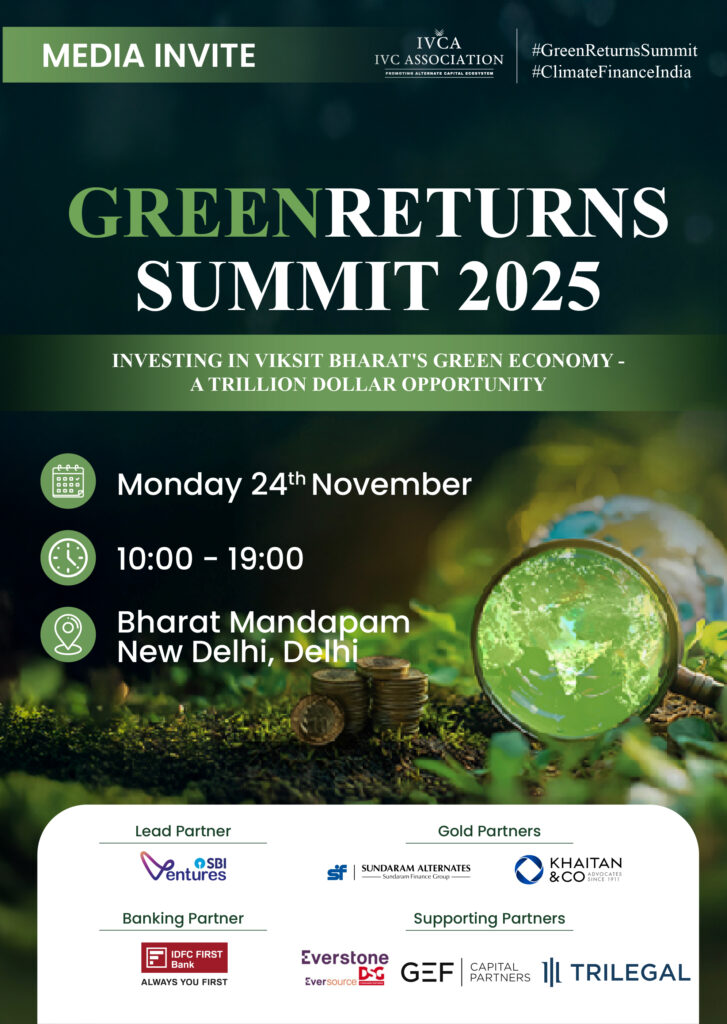 We’re delighted to invite you to the second edition of IVCA’s GreenReturns Summit 2025, hosted by the Indian Venture and Alternate Capital Association (IVCA) on November 24–25, 2025, at Bharat Mandapam, New Delhi, from 10:00 a.m. onwards.